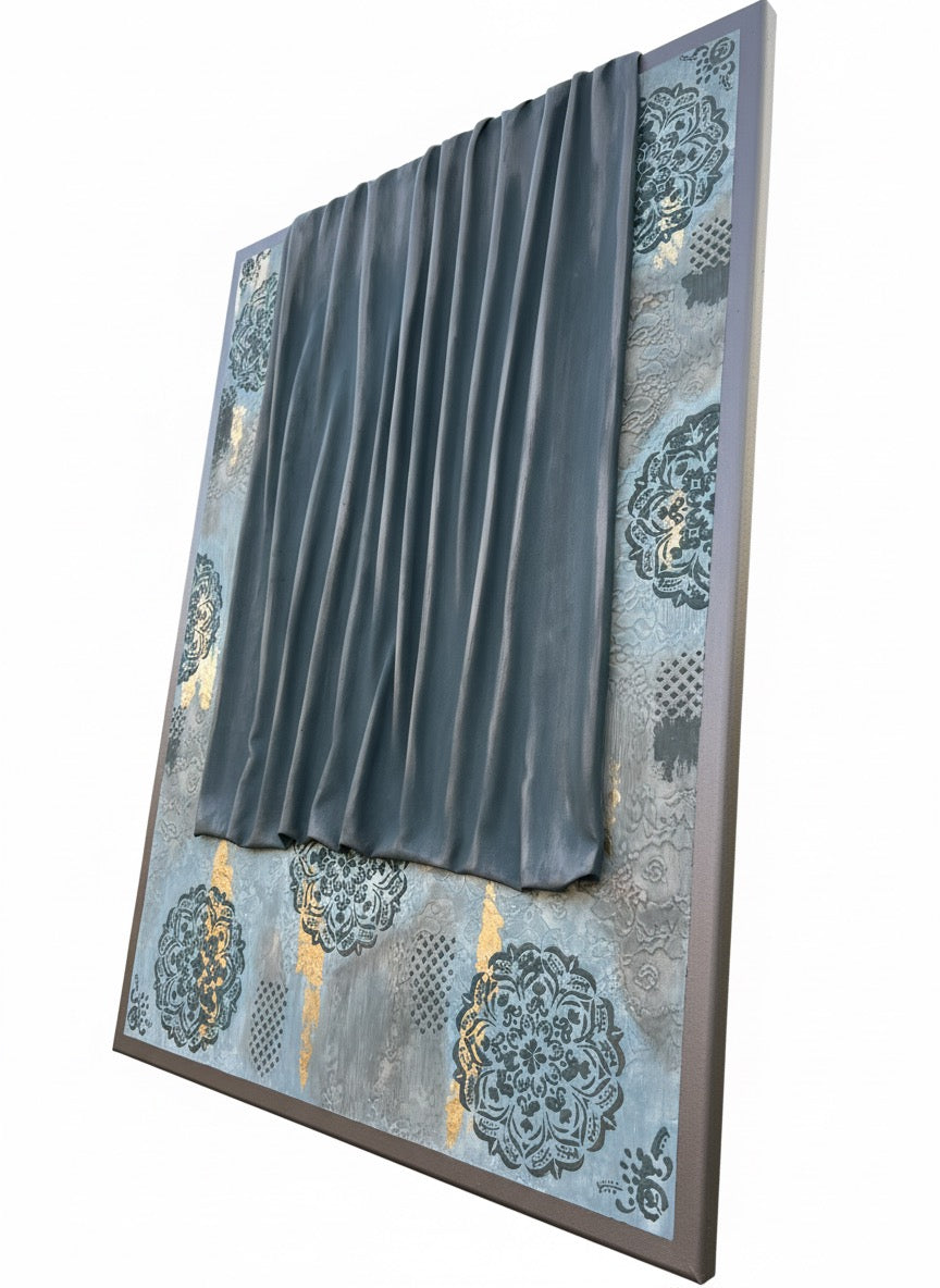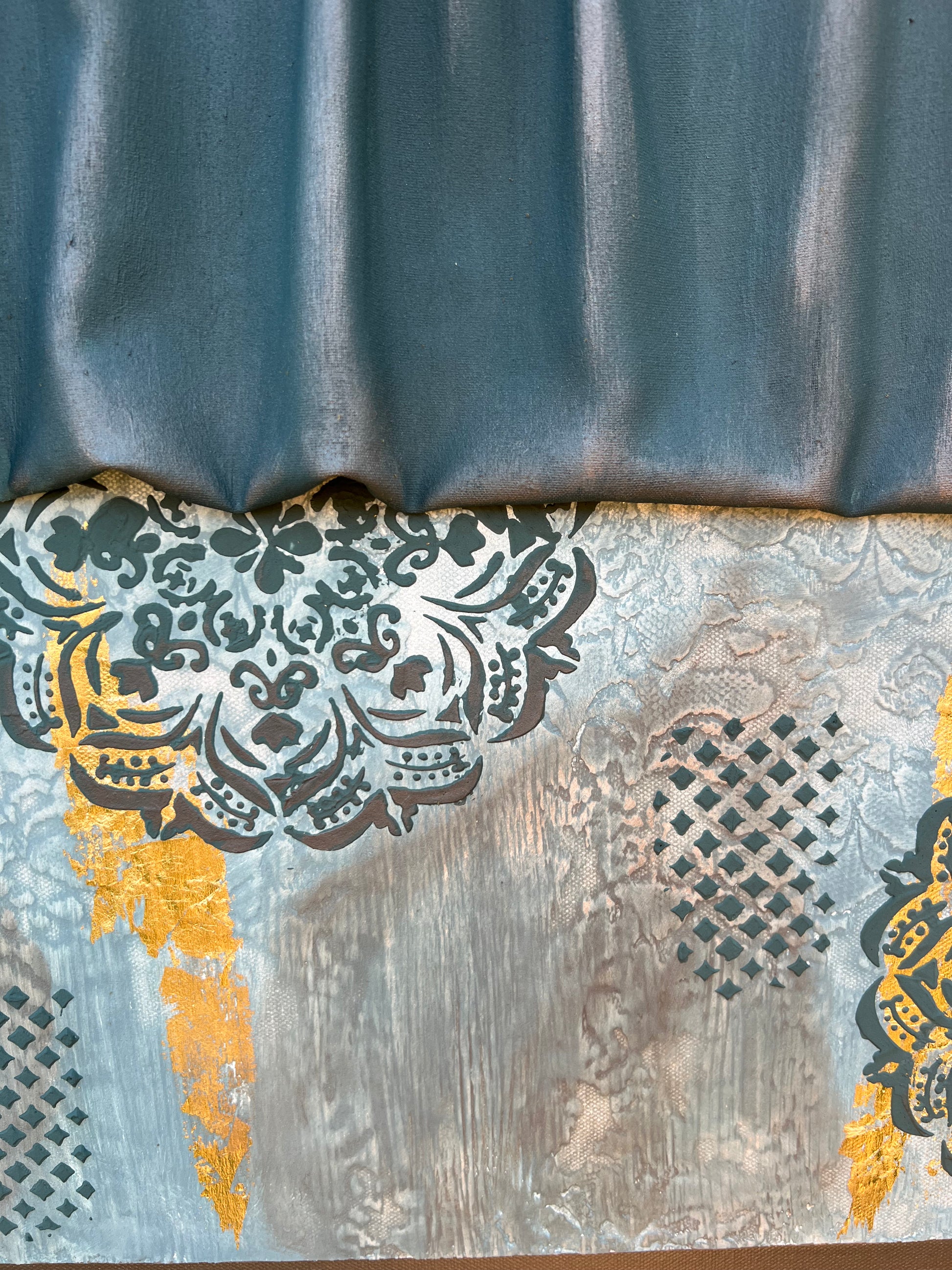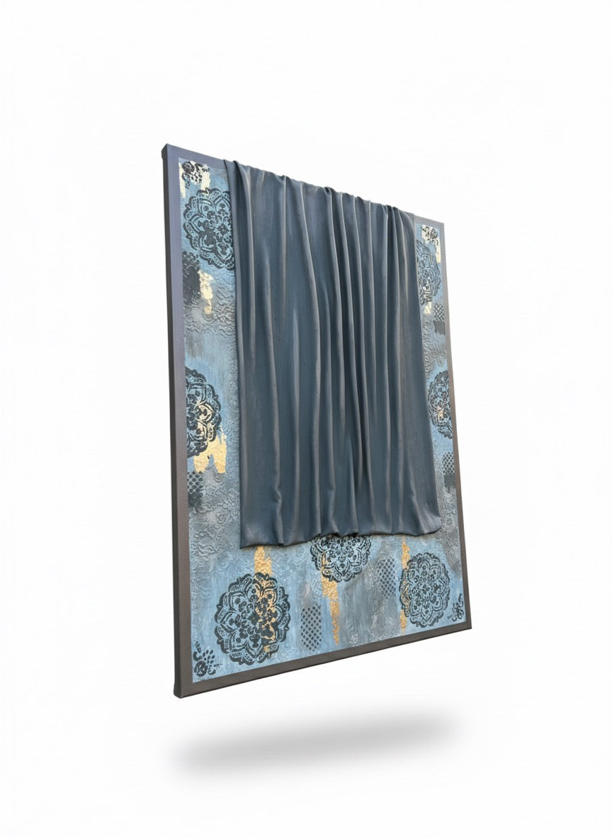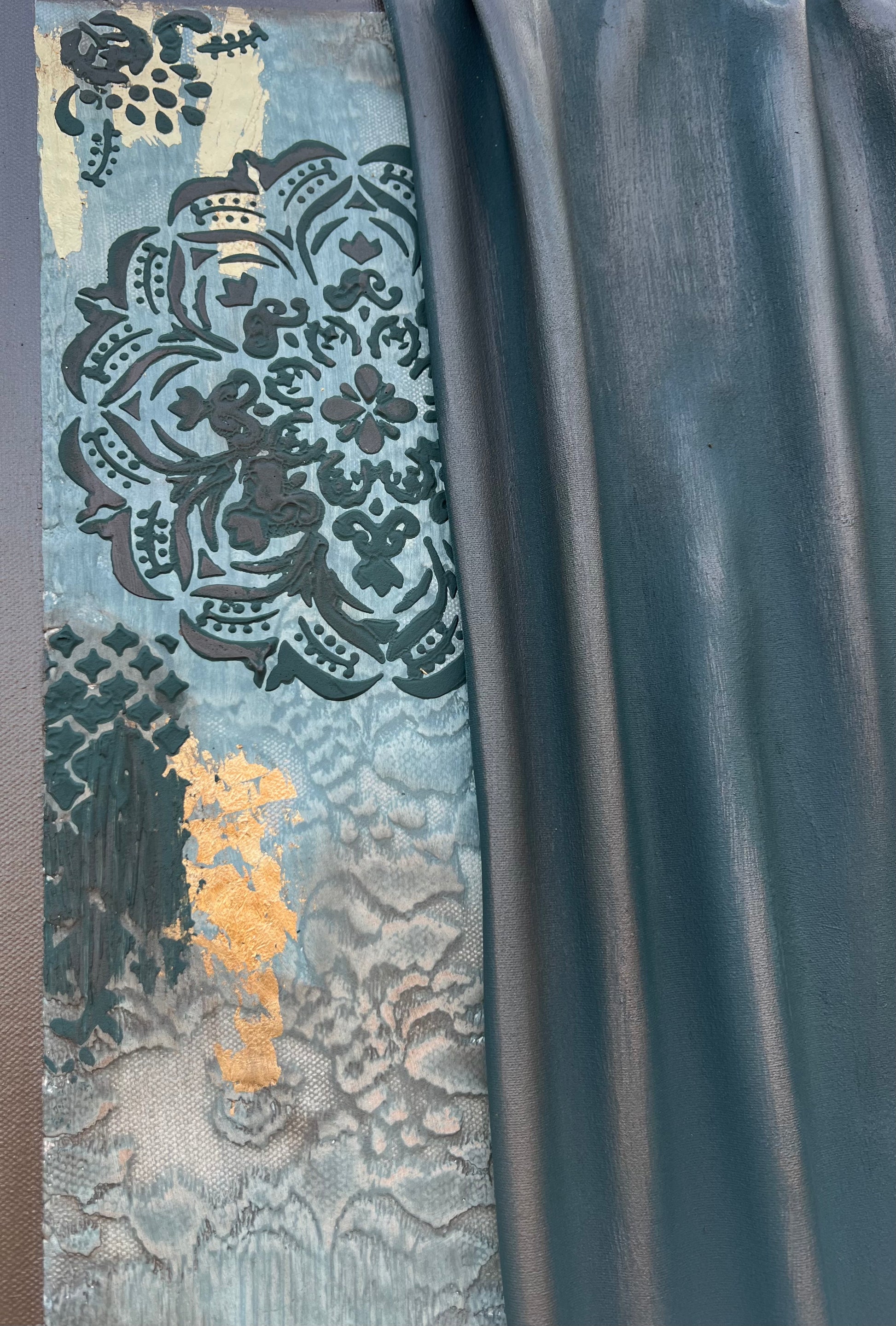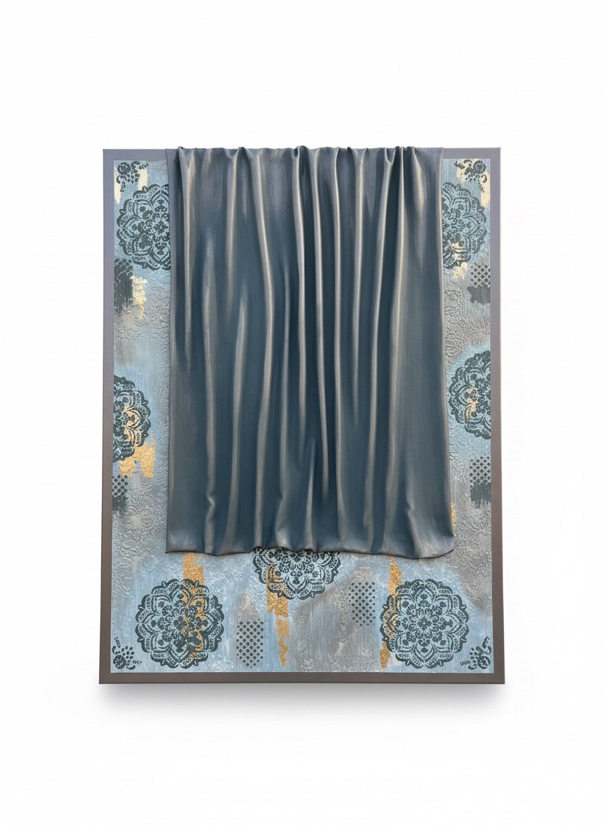 Plaster, acrylic paint on canvas with a sculpted, textured surface.